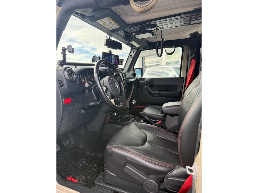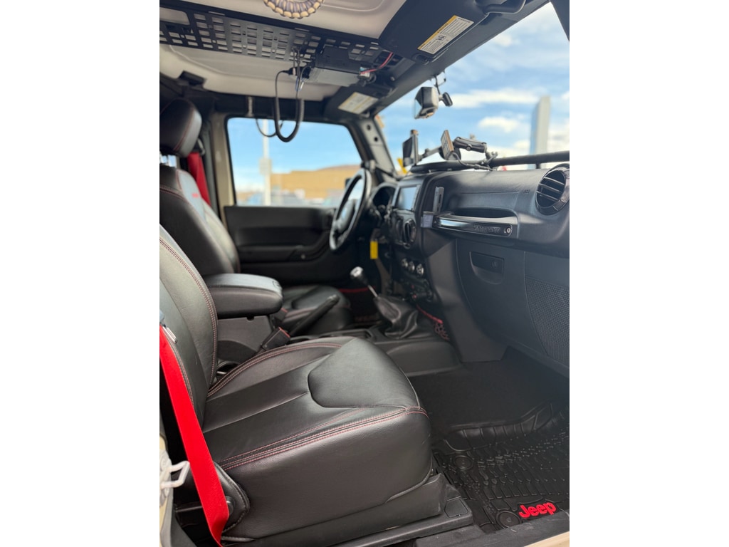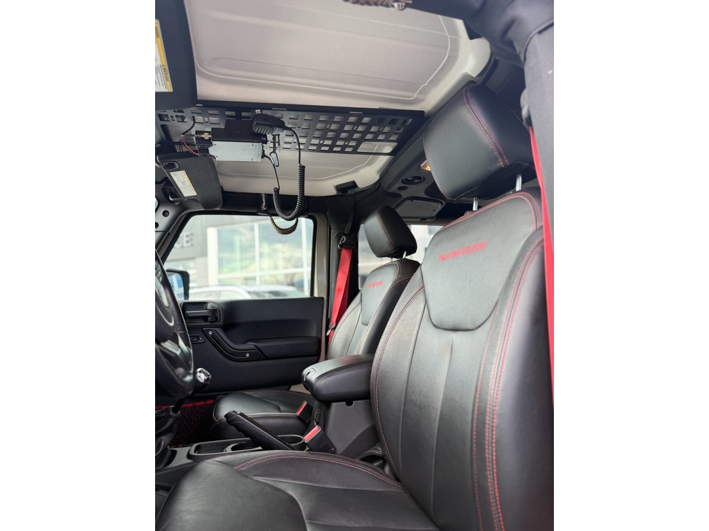 Power Convenience Group: Auto Dim Mirror with Reading Lamp; Front 1-Touch Down Power Windows; Power Heated Mirrors; Security Alarm; Power Locks; Remote Keyless Entry. Quick Order Package 23Z Rubicon Recon: 17 X 7.5 Granite Crystal Aluminum Wheels; Heated Front Seats; Low Gloss Black Wrangler Decal; Premium EVIC Message Center; R1234YF A/C Refrigerant; HD Rock Rails with Step Pad; Recon Decals; Black Fuel Filler Door; Recon Package; Accent Stitching; Steel Front Bumper; MOPAR Black Tail Lamp Guards; Air Conditioning with Auto Temp Control; Deep Tint Sunscreen Windows; Recon Leather Seats; MOPAR Coat Hooks and Grab Handles; Premium Black Sunrider Soft Top; Red Seat Belts; Midnight Star Interior Accents; Logloss Granite Crystal Jeep Badge; Recon Grille; Hood with Power Dome; Red Switches; Jeep Trail Rated Kit; Red Trail Rated Badge; Dana 44/226MM Rear Axle; Dana M44/216MM Front Axle; MOPAR Slush Mats with Red Accents; Red Front and Rear Tow Hooks; Recon Badge; Steel Rear Bumper. Connectivity Group: Vehicle Information Center; Remote USB Port; Uconnect Voice Command with Bluetooth; Tire Pressure Monitoring Display. 430 Nav Radio. Black 3-Piece Hard Top. **Equipment listed is based on original vehicle build and subject to change. Please confirm the accuracy of the included equipment by calling the dealer prior to purchase.**